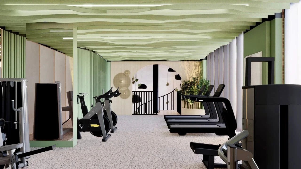 If the stair is visually prominent, it can become a marketing asset — but it must not create confusion about where the gym begins and how zones connect.
